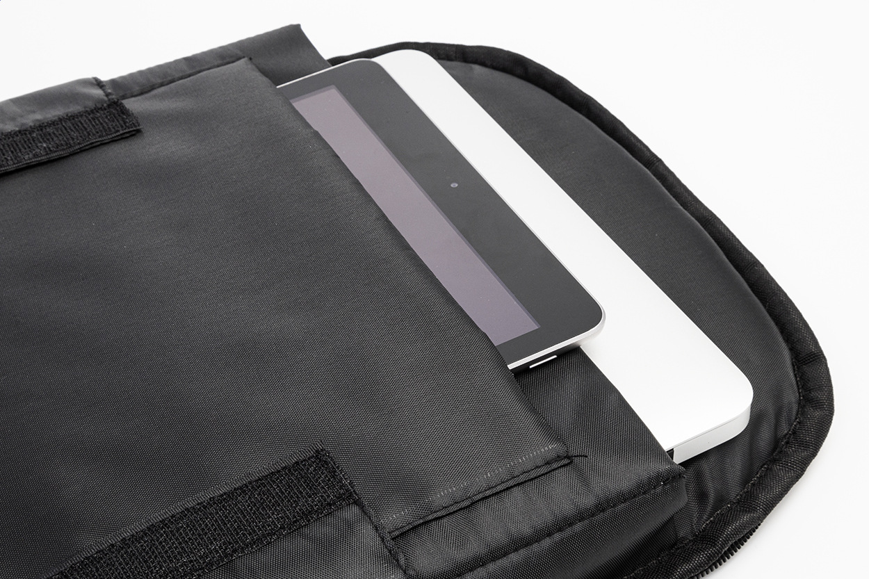 Batoh z RPET s ochranou proti krádeži s priehradkou na zips, polstrovanou priehradkou na notebook (15") a tabliet (12"), popruhom na kufor, polstrovaným chrbtom a ramennými popruhmi. So skrytým vreckom proti krádeži. Polyester 300D RPET. S výrazným štítkom RPET.