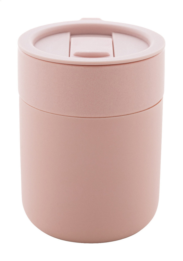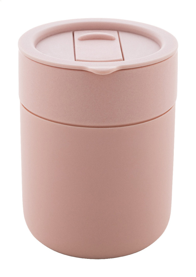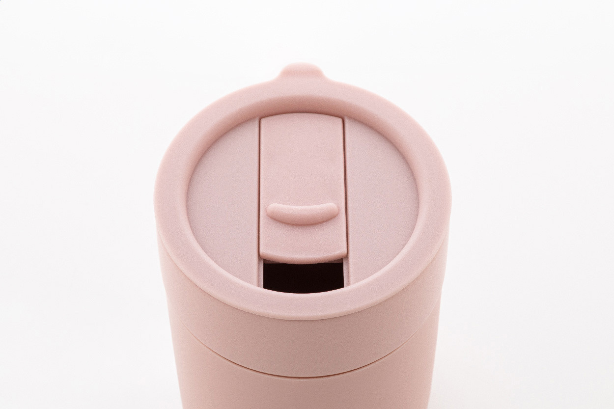 Silikónom potiahnutý keramický cestovný hrnček s PP plastovým odkvapkávacím viečkom. 300 ml.