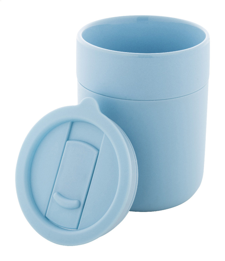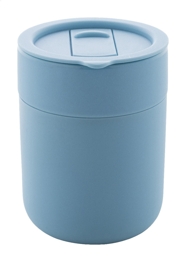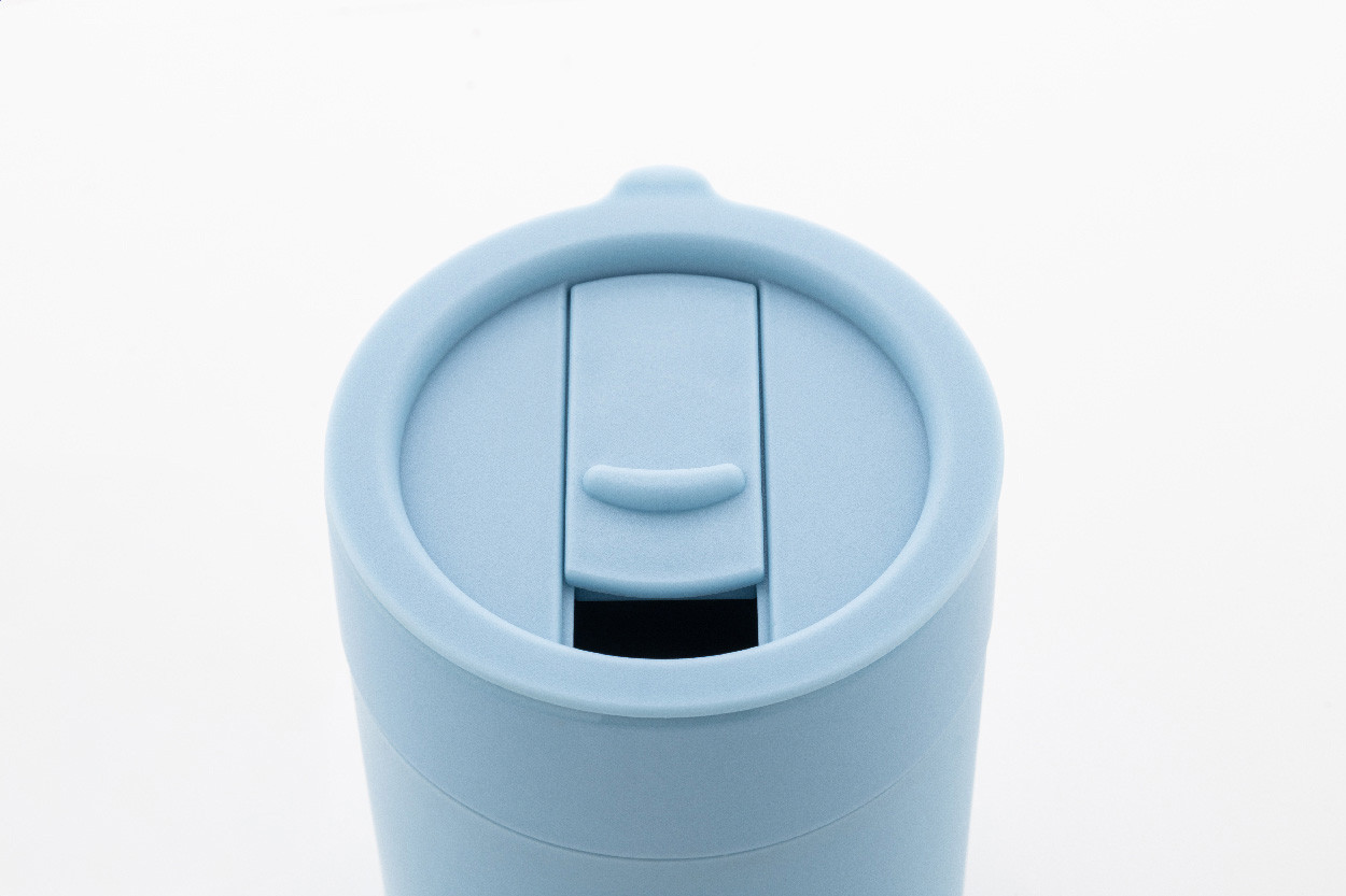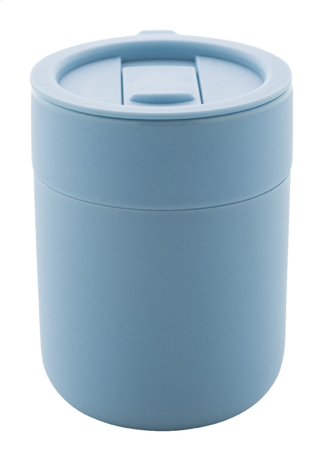 Silikónom potiahnutý keramický cestovný kelímok s PP plastovým odkvapkávacím viečkom. 300 ml.