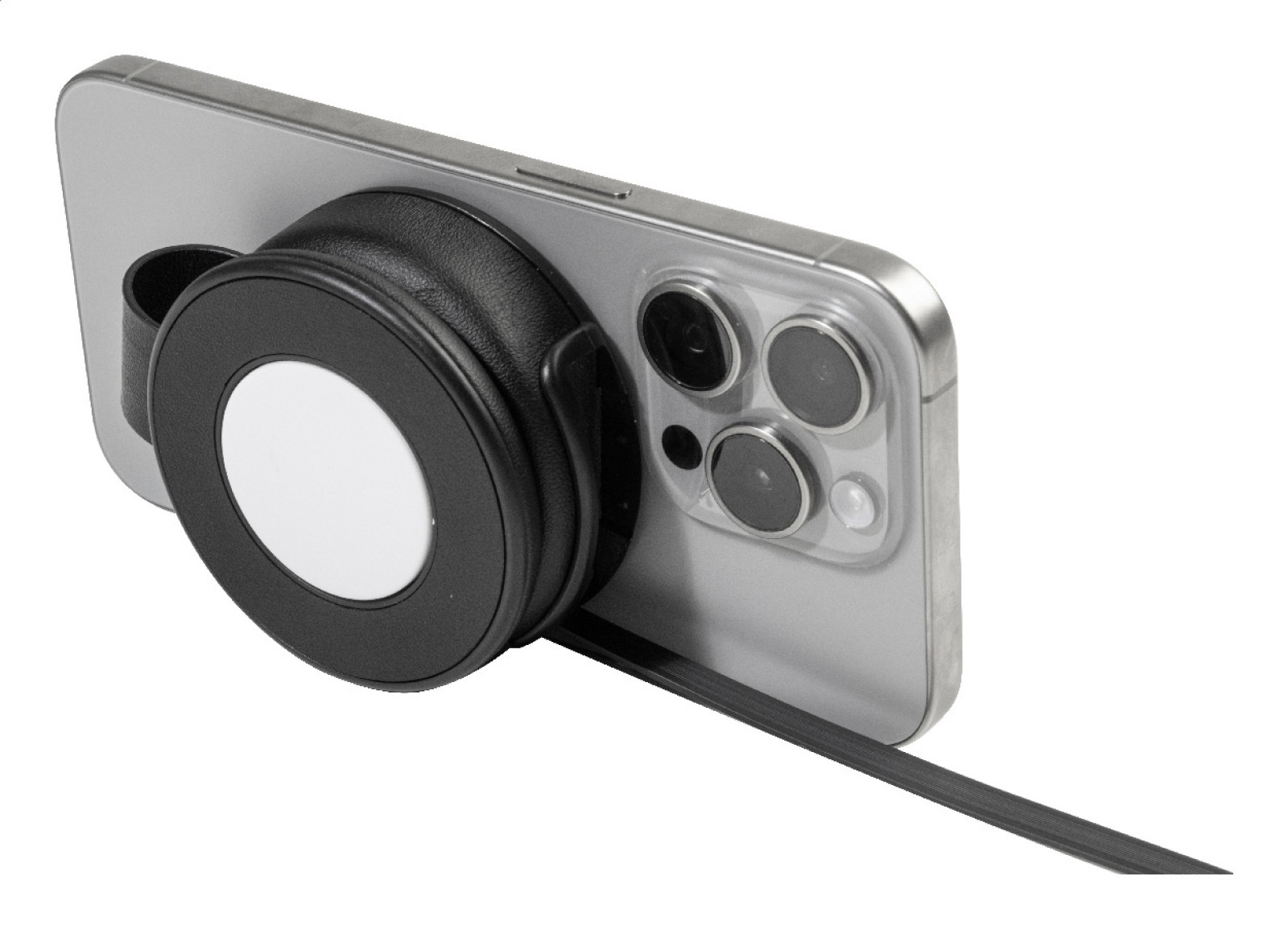 Luxusná skladacia bezdrôtová nabíjacia sada z recyklovanej PU kože s magnetickou bezdrôtovou rýchlonabíjačkou (15 W), sekundárnou bezdrôtovou nabíjačkou (2,5 W) pre chytré hodinky (Apple® a Samsung®) a vstavaným teleskopickým nabíjacím káblom USB-C. Vrátane samolepiaceho kovového krúžku na použitie magnetickej funkcie na akomkoľvek bezdrôtovo nabíjacom zariadení. Kompatibilný s iPhone® 12 alebo novším.