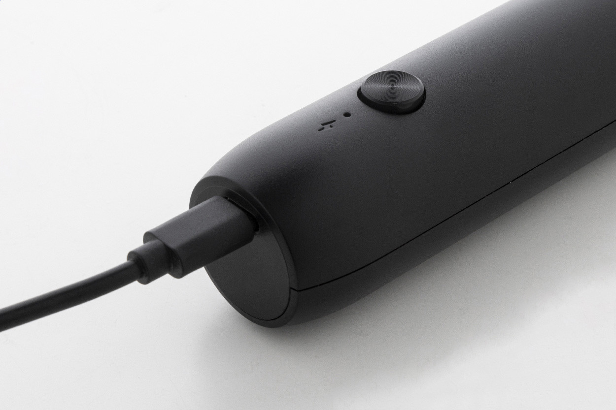 Elektrický ručný napeňovač mlieka v puzdre z recyklovaného ABS s matným povrchom. So vstavanou dobíjacou batériou cez USB (500 mAh). Vrátane nabíjacieho kábla USB-C.