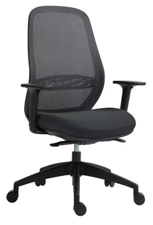 Kancelárska stolička s pohodlným sedadlom dizajnové prevedenie s hrubým, tvarovaným polstrovaním sedadla pre vyšší komfort pri sedení výškové nastavenie pomocou plynového piestu priedušné sieťované operadlo s nastaviteľnou bedrovou opierkou synchrónna mechanika nastaviteľná hĺbka sedadla nastaviteľná výška opierok nosnosť: 130 kg Poťah: sedadlo: protioderová látka operadlo: napnutá sieťovaná tkanina