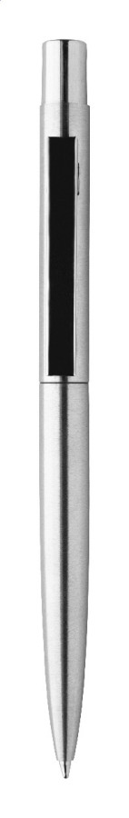 Guľôčkové pero z recyklovanej nerezovej ocele s chrómovanými detailmi. S modrou náplňou.