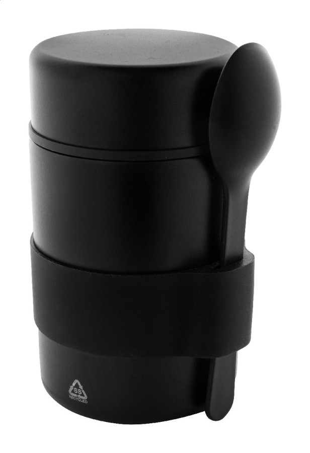 Dvojstenný, vákuovo izolovaná nádoba na jedlo z recyklovanej nerezovej ocele so silikónovou rukoväťou a PP lyžičkou. 450 ml.