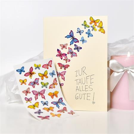 Kúzelné motýle v nádherných farbách! Nálepky s motýľmi sú perfektné na dekorovanie a kreatívne tvorenie. Ozdob listy, darčeky, priateľské zošity a zbierky básní týmito úžasnými motýľovými nálepkami. Naše dizajnové a kreatívne samolepiace nálepky sú vyrobené z tlačeného papiera. Nálepky Z-Design sú prirodzene špičkovej kvality, ktorú pravidelne kontrolujú a potvrdzujú nezávislé inštitúcie. Prajeme veľa zábavy pri zdobení! -rozmery: 76x120 mm