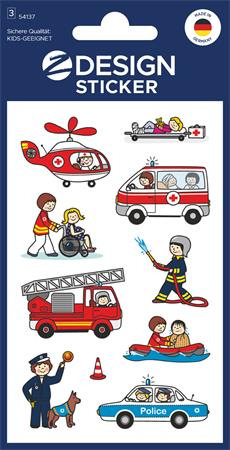 Nálepky, papier, 3 hárky, 76x120 mm, AVERY ZWECKFORM, "Z-Design No.54137", záchranári, pol