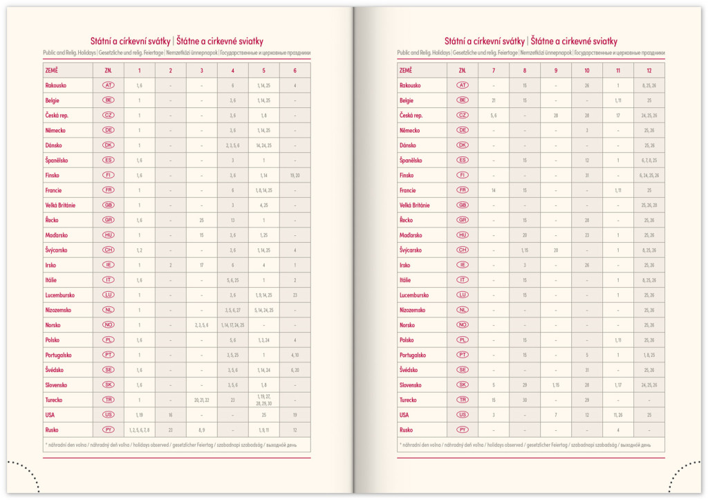 • sviatky Českej a Slovenskej republiky a medzinárodné sviatky