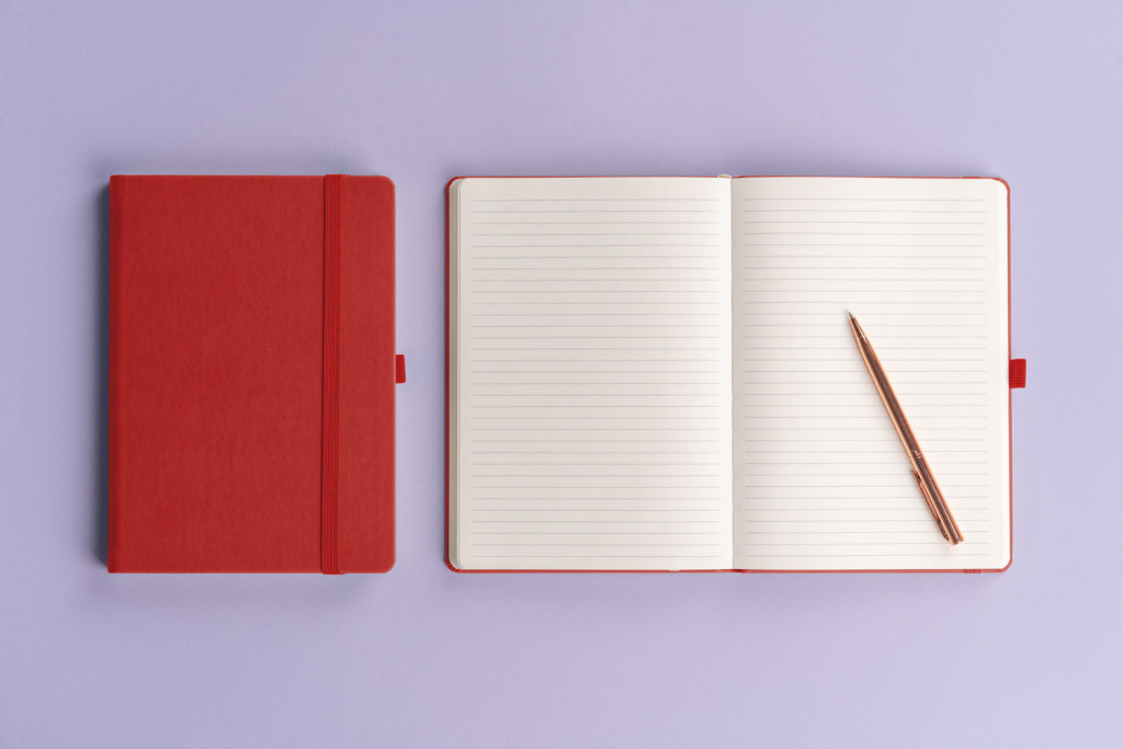 Linajkový notes Aprint 2025 v červenom prevedení. Klasika i elegancia, najžiadanejší povrch, na ktorý možno ľahko vyraziť firemné logá s jemnou štruktúrou.