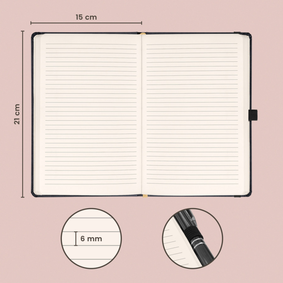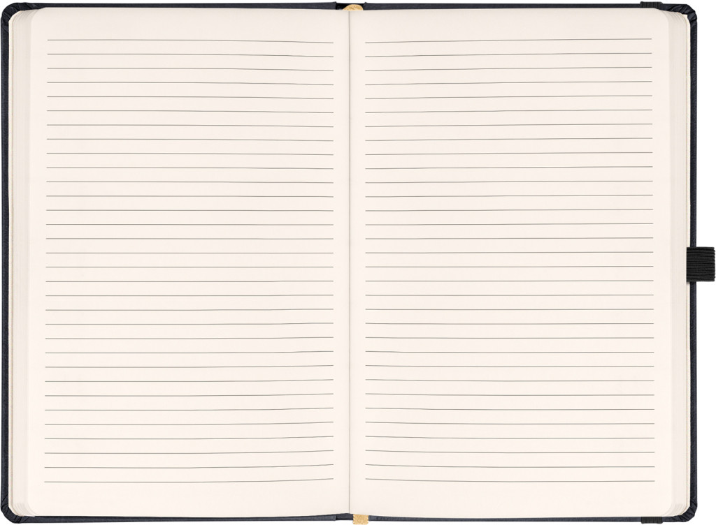 Linajkový notes Aprint 2025 v čiernom prevedení. Klasika i elegancia, najžiadanejší povrch, na ktorý možno ľahko vyraziť firemné logá s jemnou štruktúrou.