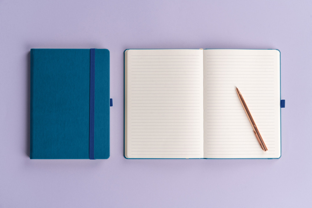 Linajkový notes Aprint 2025 v modrom prevedení. Klasika i elegancia, najžiadanejší povrch, na ktorý možno ľahko vyraziť firemné logá s jemnou štruktúrou.