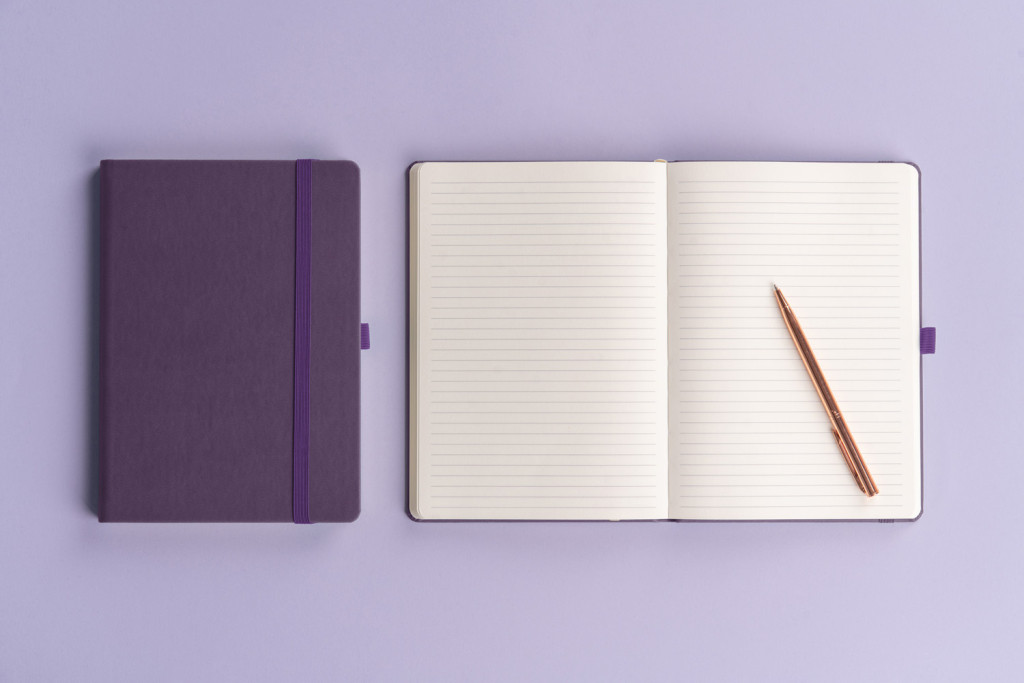 Linajkový notes Aprint Neo 2025 vo fialovom prevedení. Klasika i elegancia, najžiadanejší povrch, na ktorý je možnosť vyraziť firemné logá s jemnou štruktúrou.