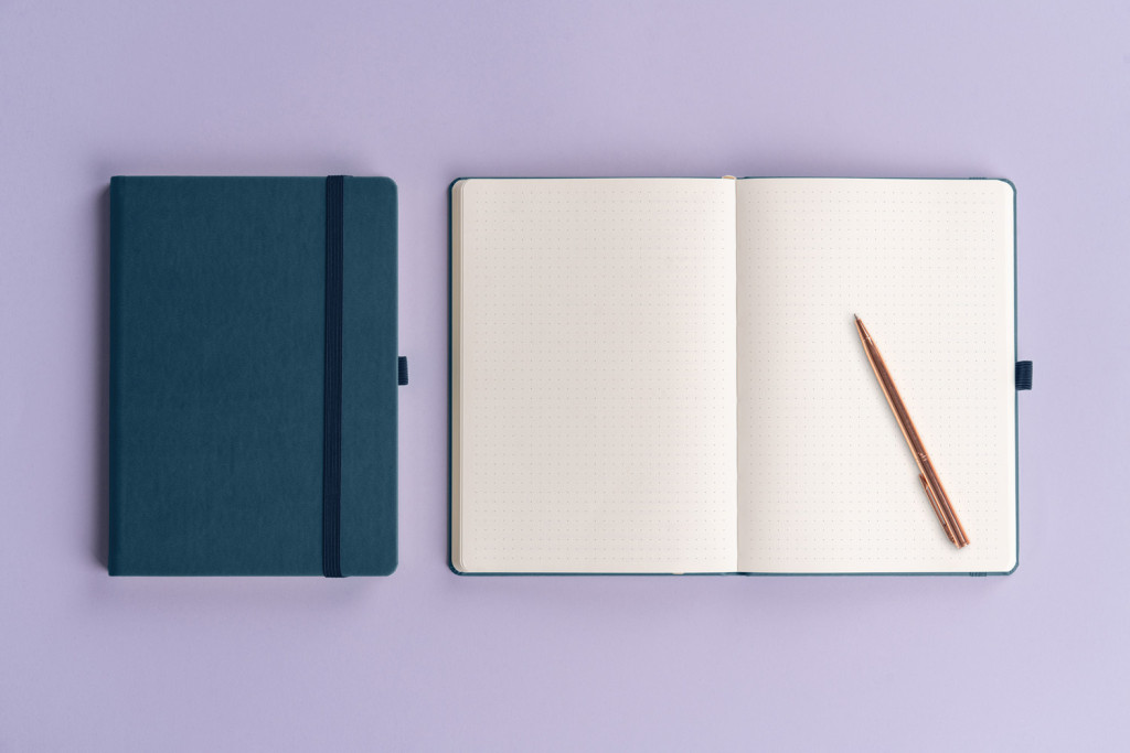 Bodkovaný notes Aprint Neo 2025 v modrom prevedení. Klasika i elegancia, najžiadanejší povrch, na ktorý je možnosť vyraziť firemné logá s jemnou štruktúrou.