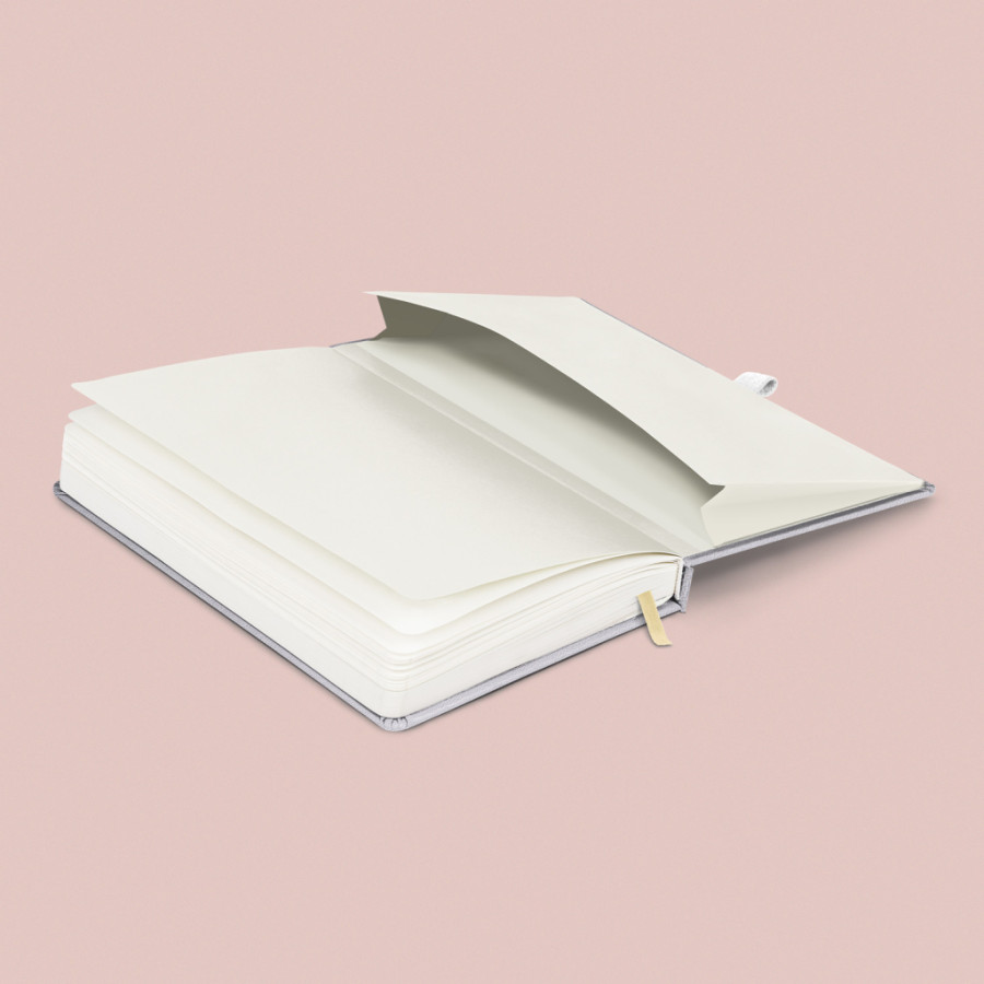 Väzba: tuhá knižná s gumičkou a pútkom na ceruzku
