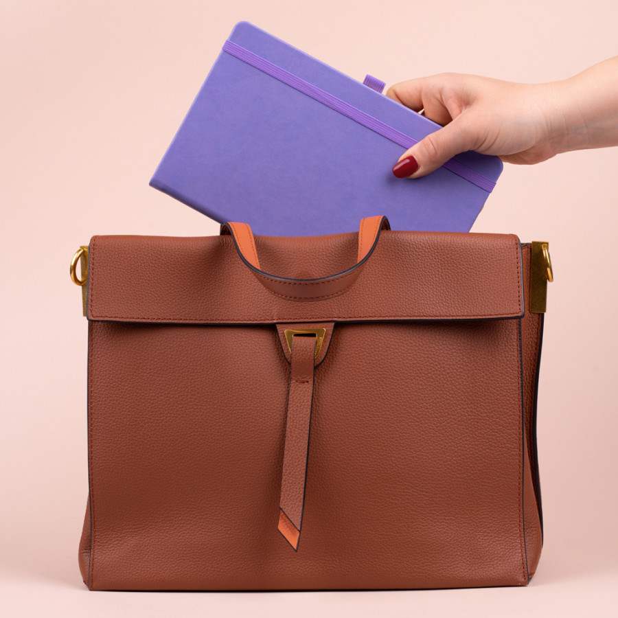 Praktický a ľahký linajkovaný notes v trendy farbe lila má povrch s jemnou štruktúrou, na ktorý si môžete nechať vyraziť logo spoločnosti. Notes má pevnú knižnú väzbu a zaoblené rohy, pútko na pero, elastickú gumičku a textilnú záložku. Linajky majú 6 mm a sú na kvalitnom žltom papieri.