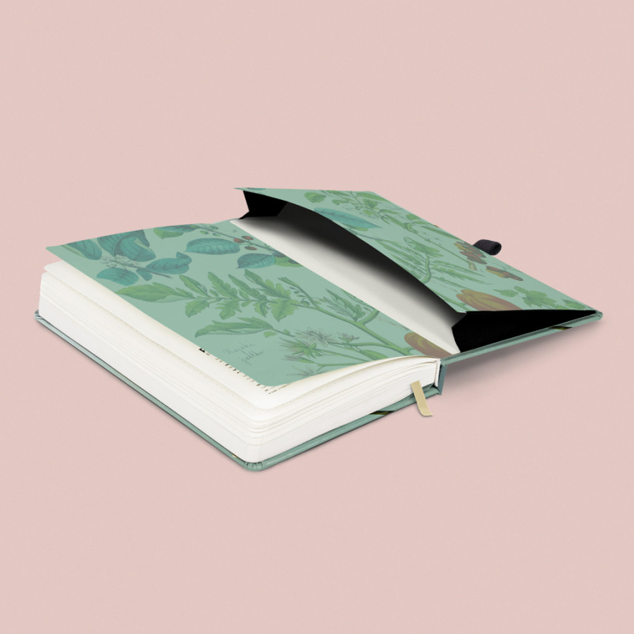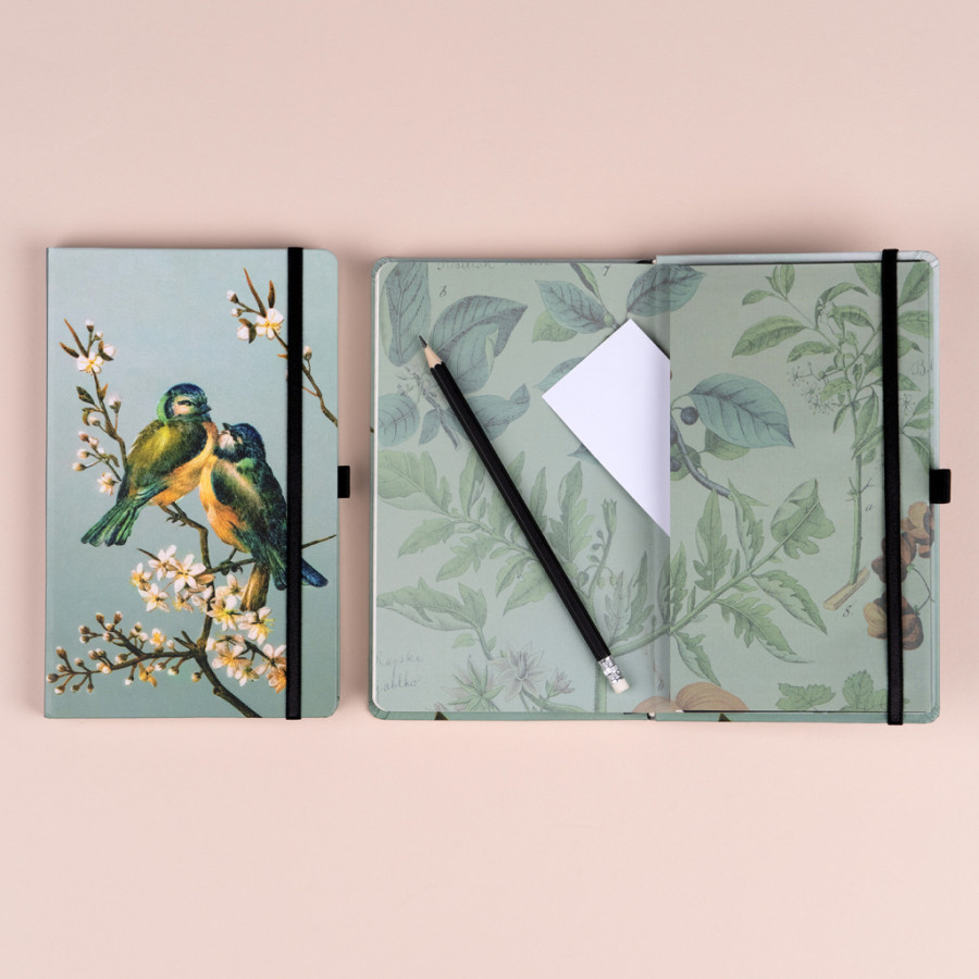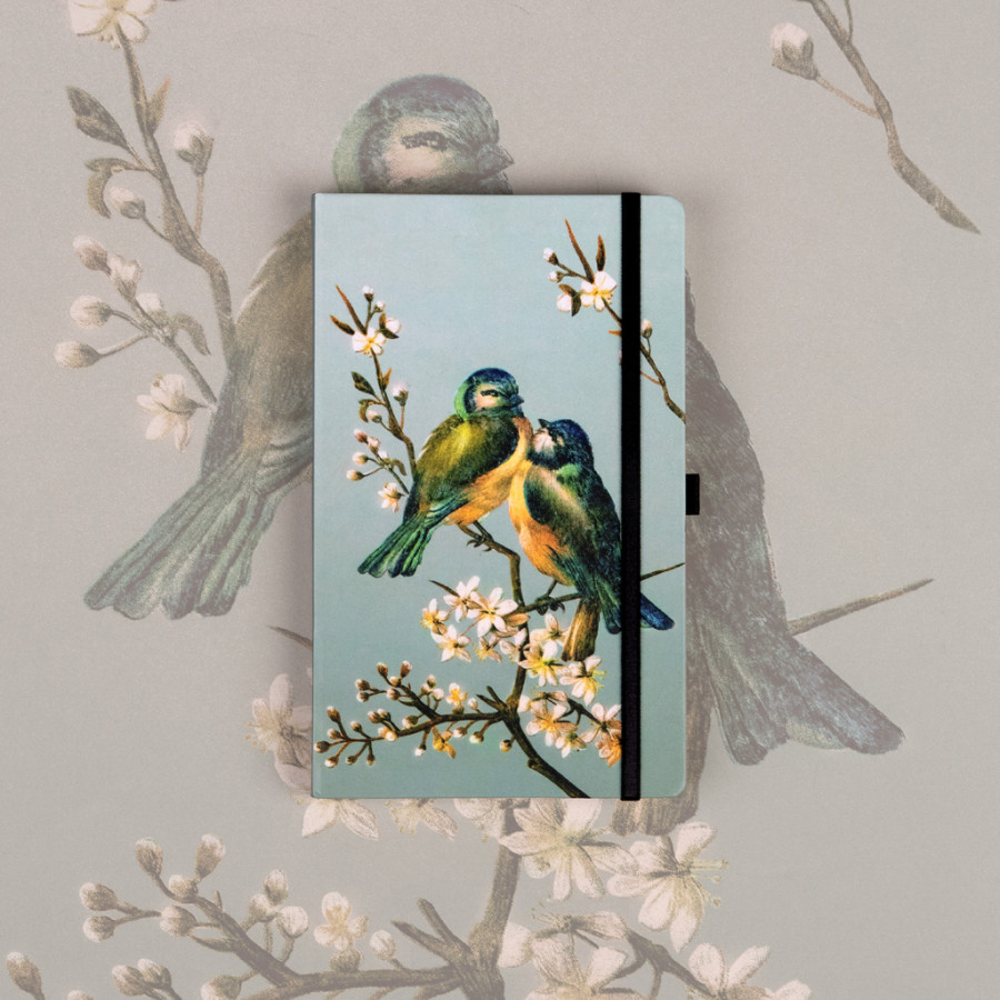 Notes v pevných doskách z kolekcie Kateřiny Winterovej s retro ilustráciami vtákov, s uzatváraním na gumičku, vreckom na drobnosti a pútkom na ceruzku. Vo vnútri nájdete 172 bodkovaných strán na žltom papieri na zapisovanie všetkých nápadov.