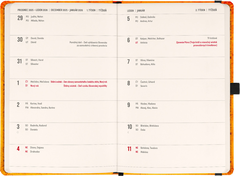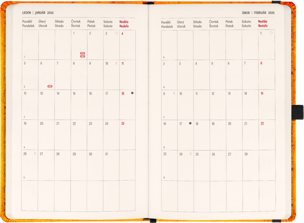 DVA SVETY. JEDEN PRODUKT. Hľadáte dokonalú kombináciu plánovania a zapisovania poznámok? PLANBOOK vám prináša to najlepšie z oboch svetov! Perfektné spojenie diára a zápisníka – prvá polovica obsahuje štrnásťdňové horizontálne kalendárium s českými a slovenskými sviatkami, zatiaľ čo druhá polovica ponúka linkované stránky pre vaše poznámky. Praktický, štýlový a dokonale prispôsobený vašim potrebám – či už si plánujete deň, alebo premýšľate nad ďalším veľkým projektom. PLANBOOK je ideálny pre všetkých, ktorí milujú organizáciu a kreativitu na jednom mieste.