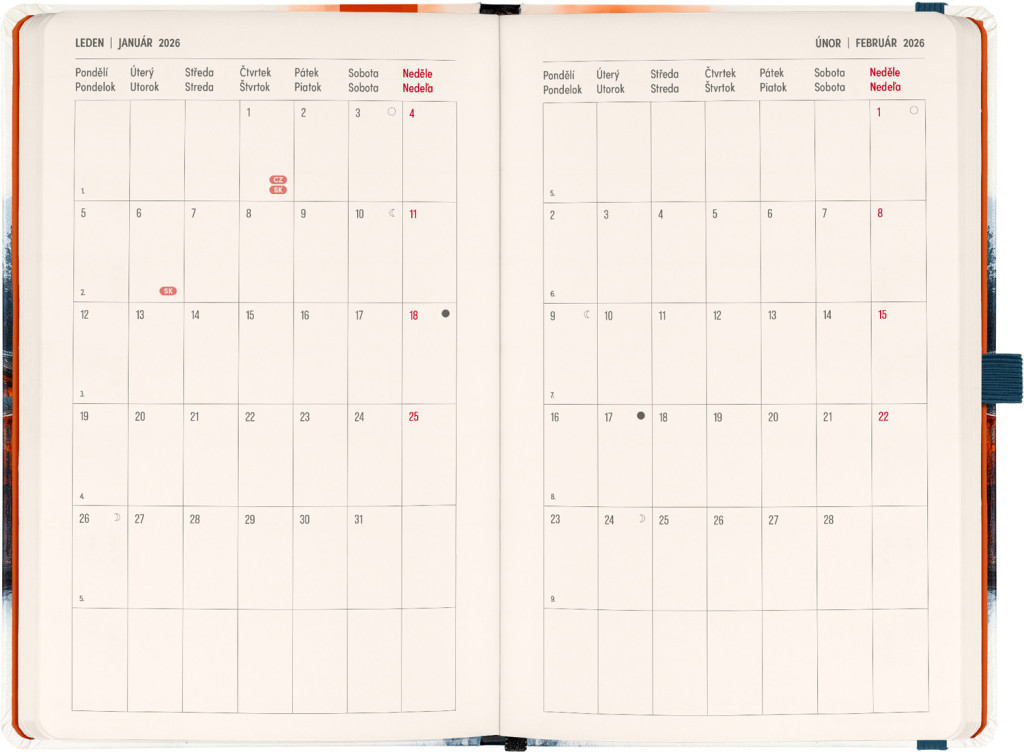 DVA SVETY. JEDEN PRODUKT. Hľadáte dokonalú kombináciu plánovania a zapisovania poznámok? PLANBOOK vám prináša to najlepšie z oboch svetov! Perfektné spojenie diára a zápisníka – prvá polovica obsahuje štrnásťdňové horizontálne kalendárium s českými a slovenskými sviatkami, zatiaľ čo druhá polovica ponúka linkované stránky pre vaše poznámky. Praktický, štýlový a dokonale prispôsobený vašim potrebám – či už si plánujete deň, alebo premýšľate nad ďalším veľkým projektom. PLANBOOK je ideálny pre všetkých, ktorí milujú organizáciu a kreativitu na jednom mieste.