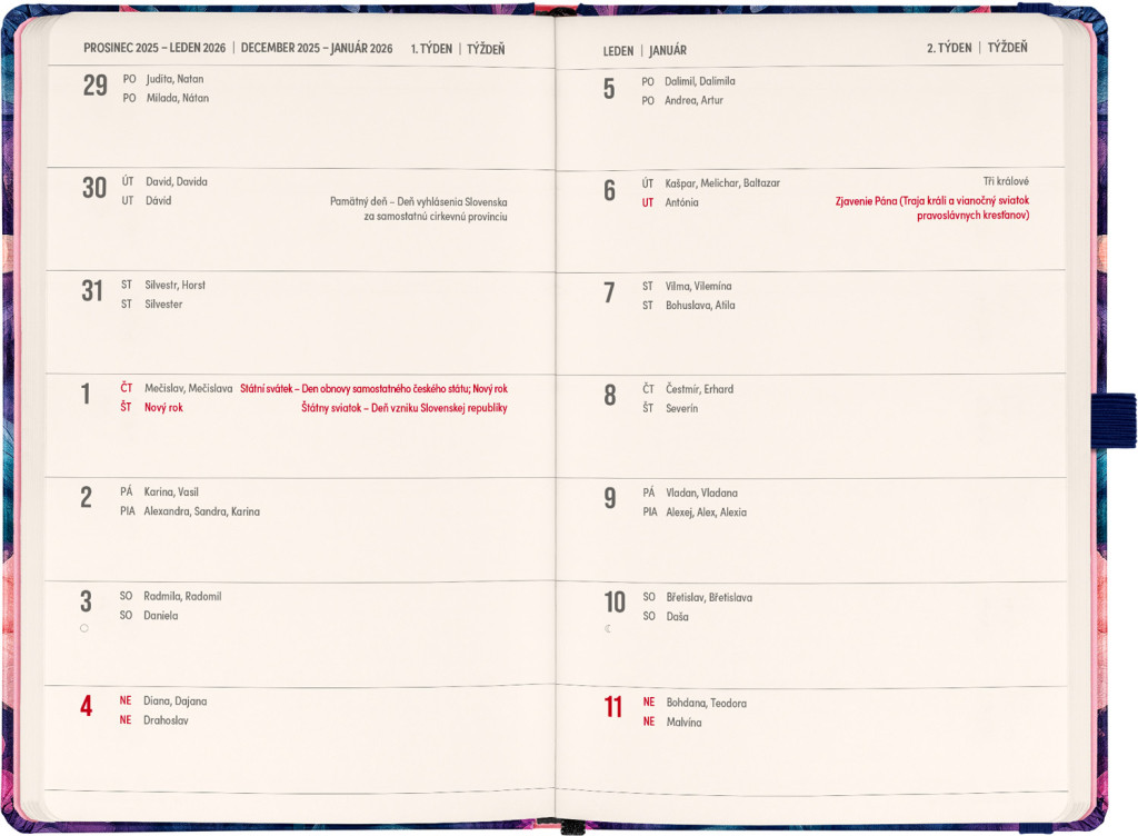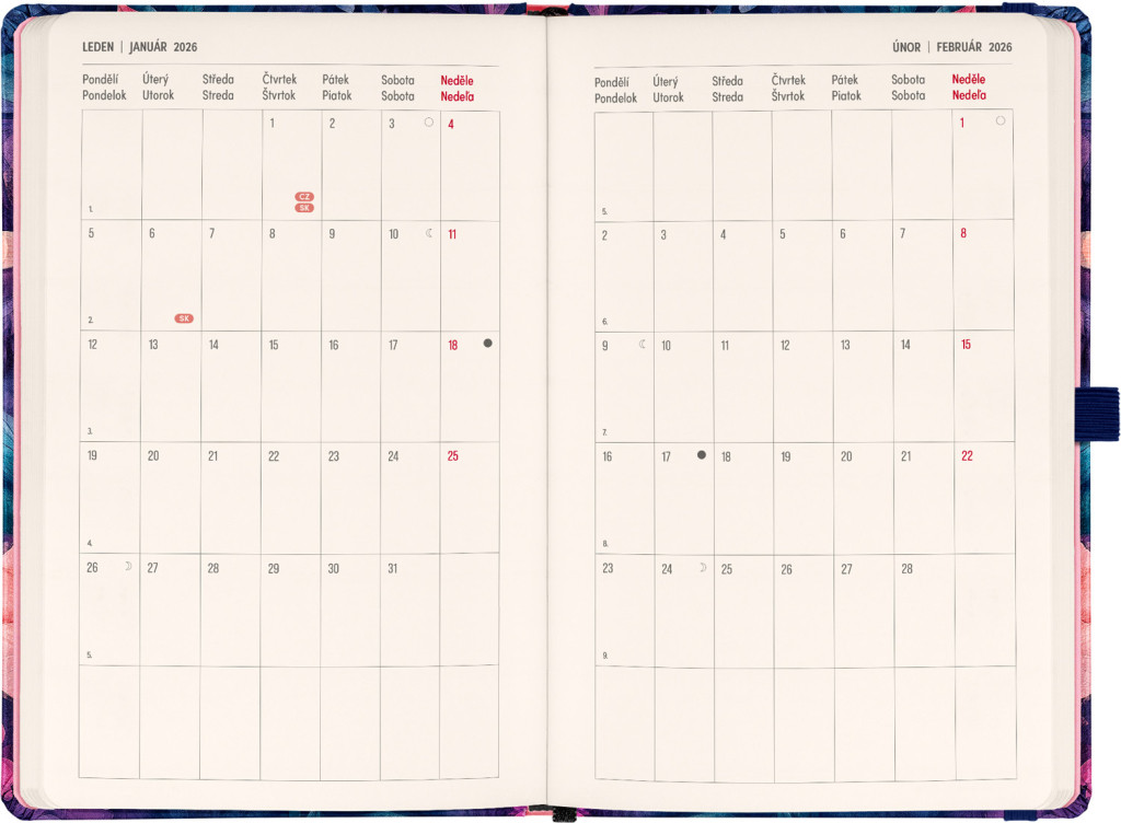 DVA SVETY. JEDEN PRODUKT. Hľadáte dokonalú kombináciu plánovania a zapisovania poznámok? PLANBOOK vám prináša to najlepšie z oboch svetov! Perfektné spojenie diára a zápisníka – prvá polovica obsahuje štrnásťdňové horizontálne kalendárium s českými a slovenskými sviatkami, zatiaľ čo druhá polovica ponúka linkované stránky pre vaše poznámky. Praktický, štýlový a dokonale prispôsobený vašim potrebám – či už si plánujete deň, alebo premýšľate nad ďalším veľkým projektom. PLANBOOK je ideálny pre všetkých, ktorí milujú organizáciu a kreativitu na jednom mieste.