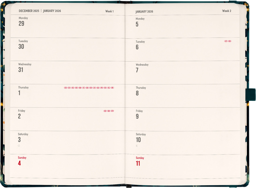 DVA SVETY. JEDEN PRODUKT. Hľadáte dokonalú kombináciu plánovania a zapisovania poznámok? PLANBOOK vám prináša to najlepšie z oboch svetov! Perfektné spojenie diára a zápisníka – prvá polovica obsahuje štrnásťdňové horizontálne kalendárium s medzinárodnými sviatkami, zatiaľ čo druhá polovica ponúka linkované stránky pre vaše poznámky. Praktický, štýlový a dokonale prispôsobený vašim potrebám – či už si plánujete deň, alebo premýšľate nad ďalším veľkým projektom. PLANBOOK je ideálny pre všetkých, ktorí milujú organizáciu a kreativitu na jednom mieste.