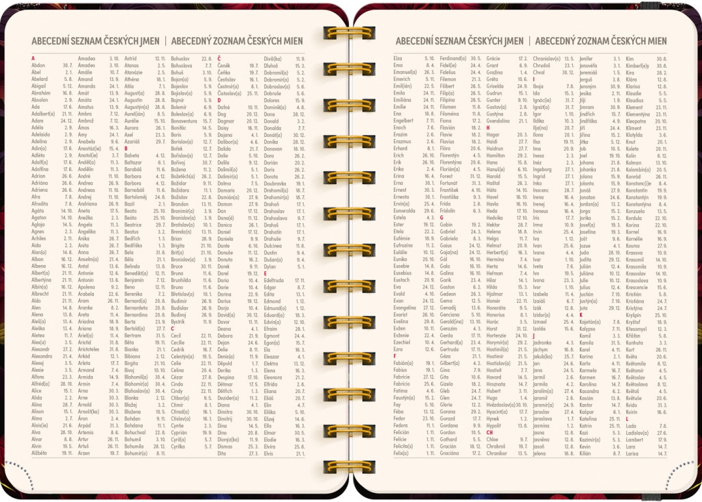 Osemnásťmesačný diár obsahuje prehľad na roky 2026 a 2027, zoznam českých a slovenských mien, česko-slovenský týždenný riadkový kalendár s menami a sviatkami a priestor na poznámky v každom týždni. Kalendár začína v júli 2026 a končí v decembri 2027.