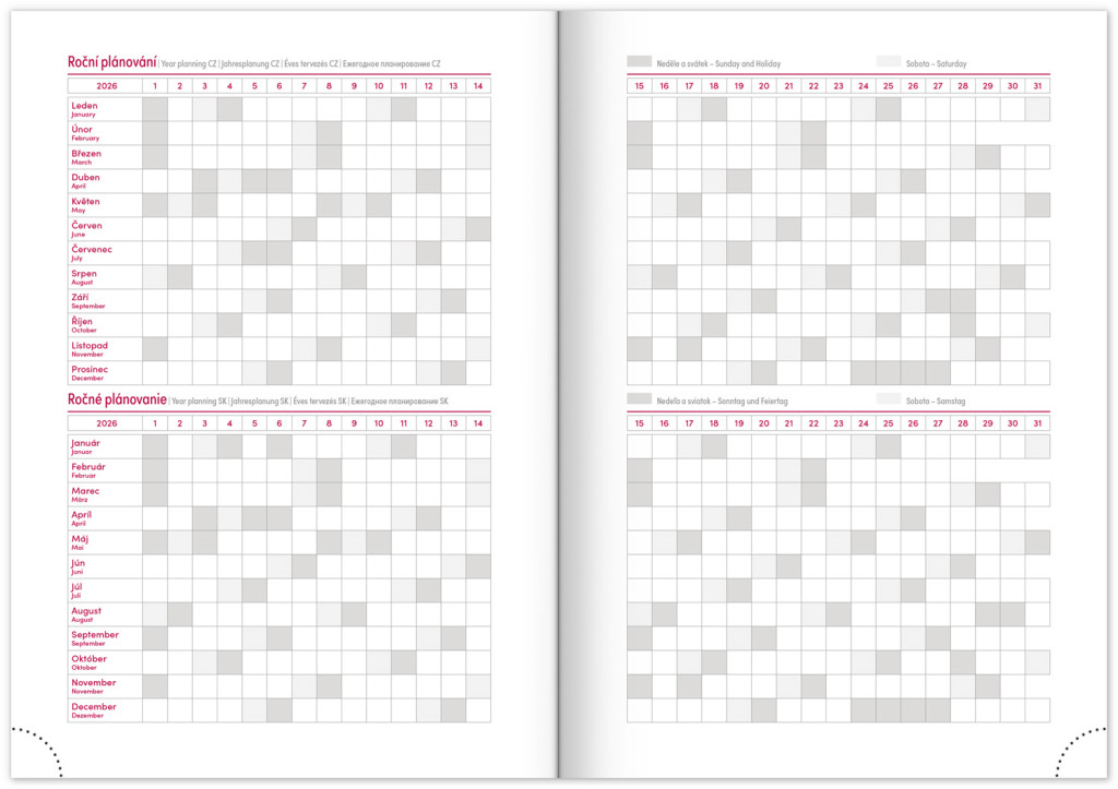 Týždenný diár Aprint Top 2026 v oranžovej farbe. Rozšírenie obľúbeného radu Aprint o variant s gumičkou na zatváranie a pútkom na ceruzku. Týždenný rozvrh s česko-slovenským kalendáriom a doplnkovou angličtinou, nemčinou, maďarčinou a ruštinou.