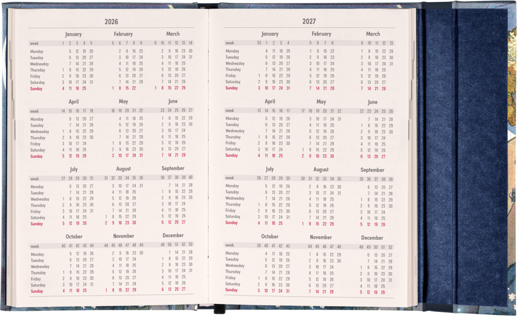 NOTIQUE Týždenný magnetický diár Alfons Mucha 2026, 11 x 16 cm