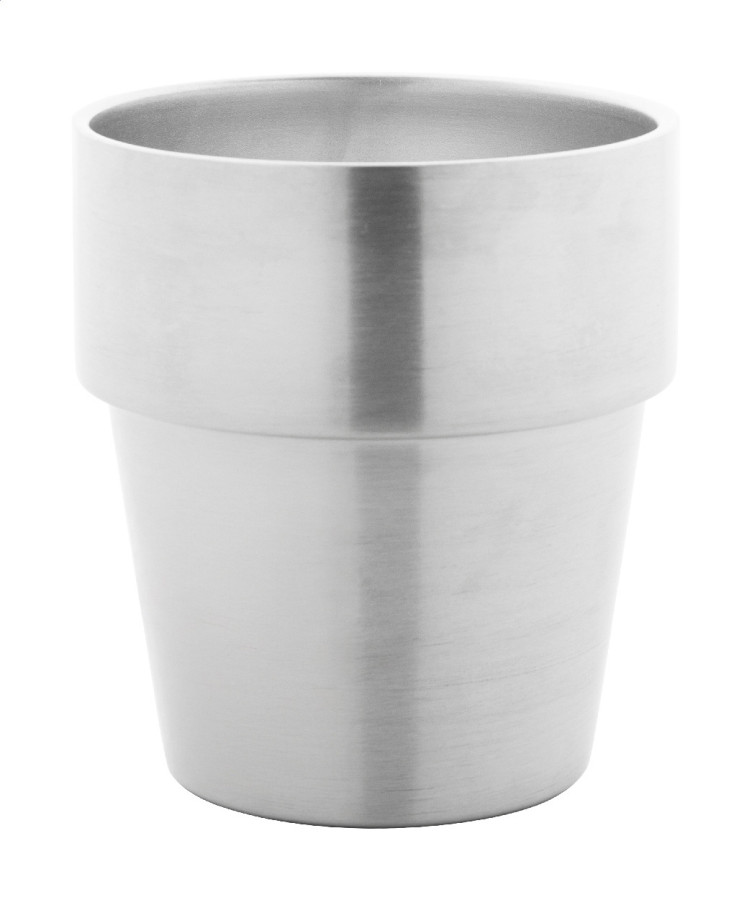 Dvojstenný termohrnček z recyklovanej nerezovej ocele s objemom 250 ml. Stohovateľný.