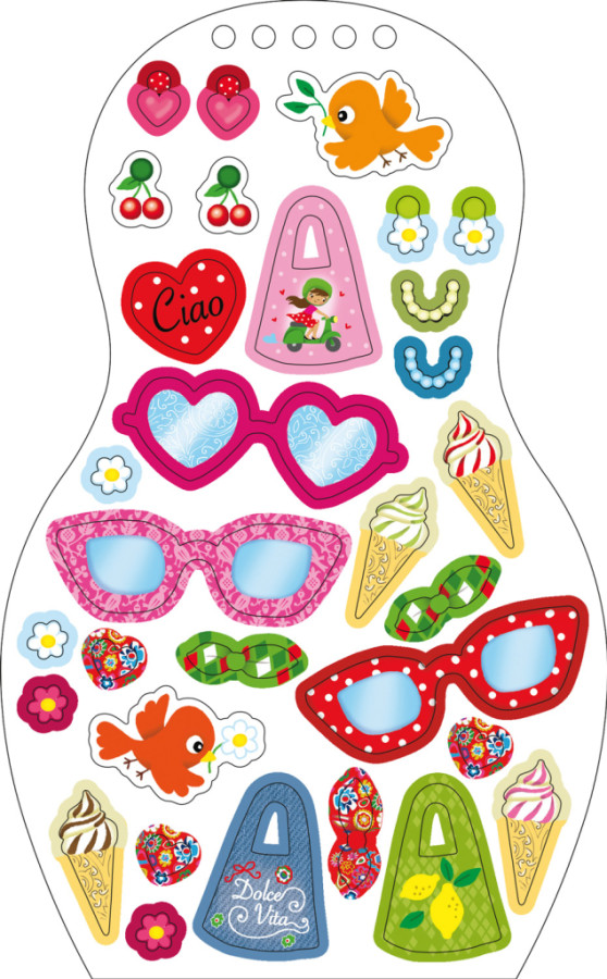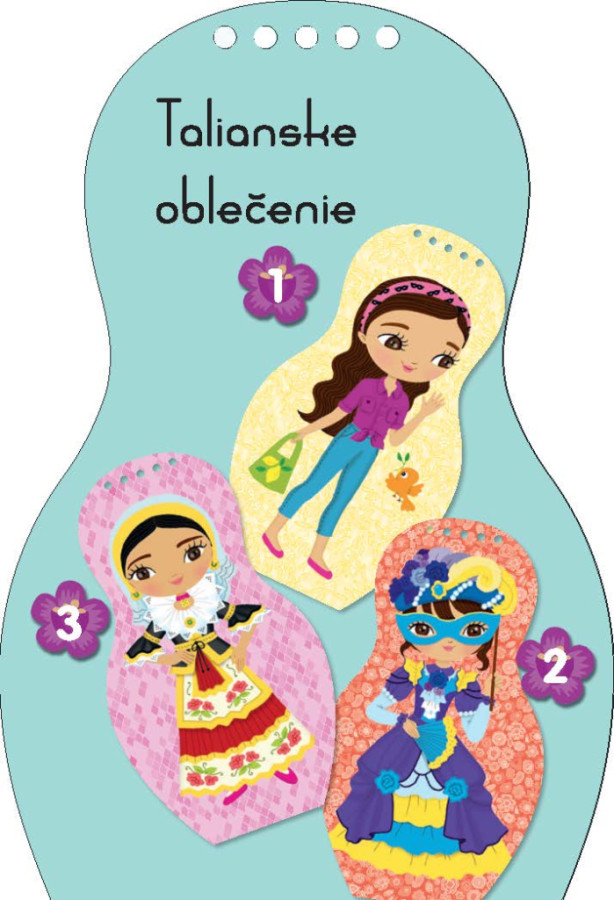 Kreatívne maľovanky, množstvo samolepiek… tieto knižky skrátka obsahujú všetko, čo je potrebné na vytvorenie nespočítateľných modelov podľa cudzokrajnej módy. Tradíciami inšpirované námety podnecujú fantáziu, a k tomu sa deti dozvedia aj mnoho zaujímavých informácií navyše! Ako ich vrstovníci v Taliansku bývajú, ako sa zdravia, učia a zabávajú, na akých špecialitách si pochutnávajú? Viete, ako chutí mozzarella, tiramisu alebo o koľko je vychýlená známa šikmá veža v Pise? To všetko a ešte omnoho viac sa dozviete, ak sa vydáte za poznávaním s našimi bábikami. A ku každej knižke dostanete navyše krásny náramok pre šťastie!