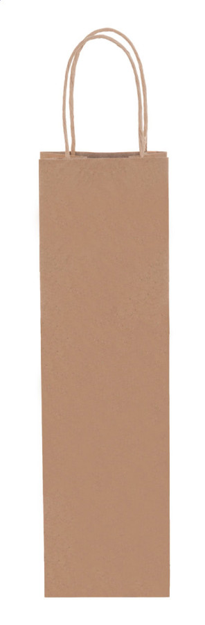 Darčeková taška z recyklovaného kraftového papiera s vianočným dizajnom vyrazeným fóliou, krútenými uchami a darčekovou visačkou. 140 g/m².