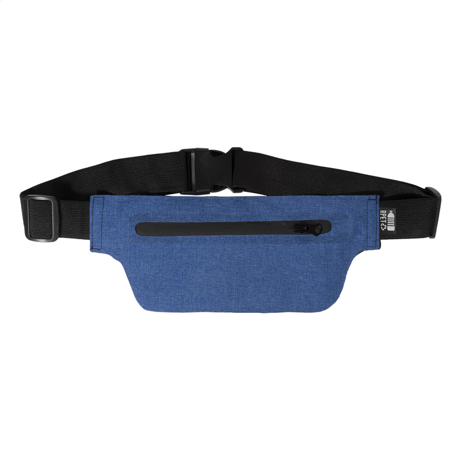 Úzka ľadvinka z RPET s priehradkou na zips a nastaviteľným elastickým popruhom. 300D RPET polyester s charakteristickým štítkom RPET.