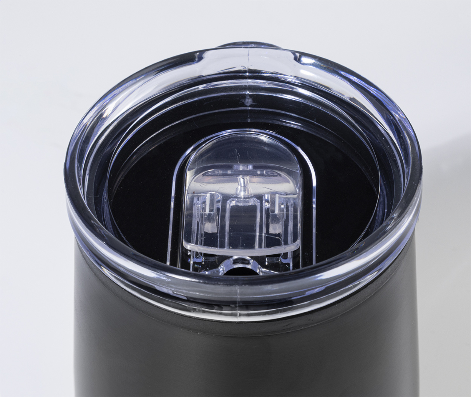 Dvojstenný termo hrnček z recyklovanej nerezovej ocele s vnútornou stranou z PP a viečkom z PS. 350 ml.