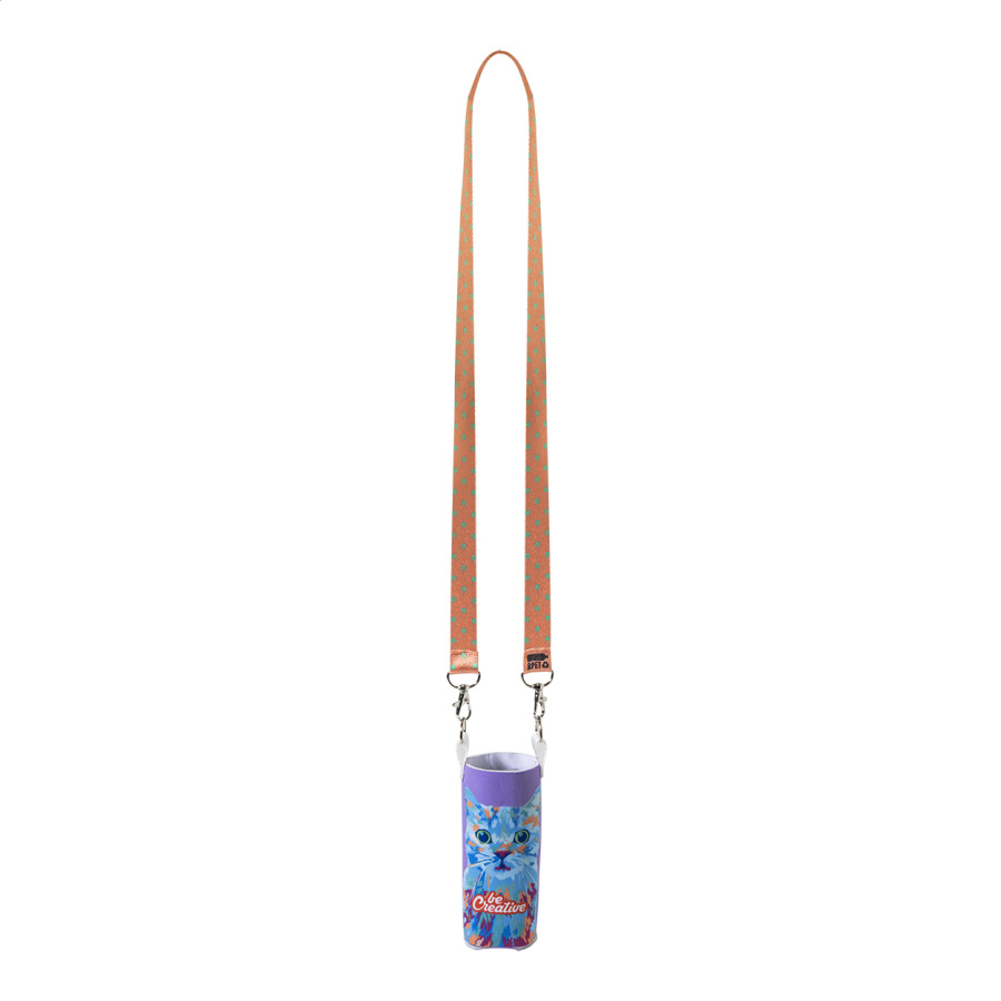 Chladiaca taška na zákazku z neoprénu z RPET na hliníkové plechovky s objemom 0,33 l s farebne potlačenou šnúrkou z RPET s kovovými karabínami. S celoplošnou sublimačnou potlačou, cena nezahŕňa tlačovú prípravu. Min. mn.: 100 ks.
