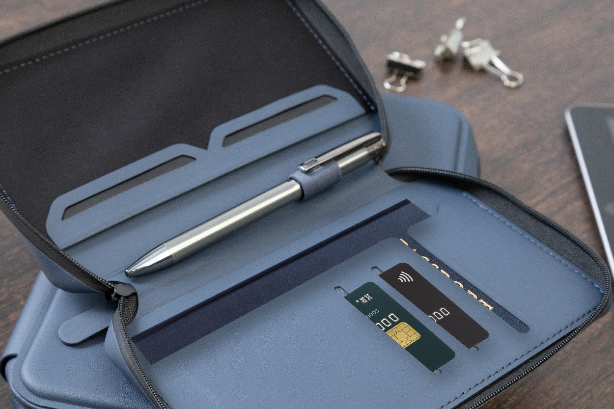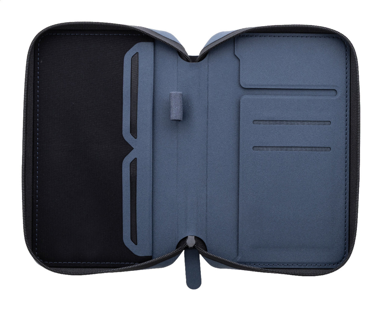Luxusný cestovný organizér a puzdro na pás na zips z recyklovanej umelej kože. S niekoľkými vnútornými vreckami na dokumenty, karty a cestovné nevyhnutnosti.