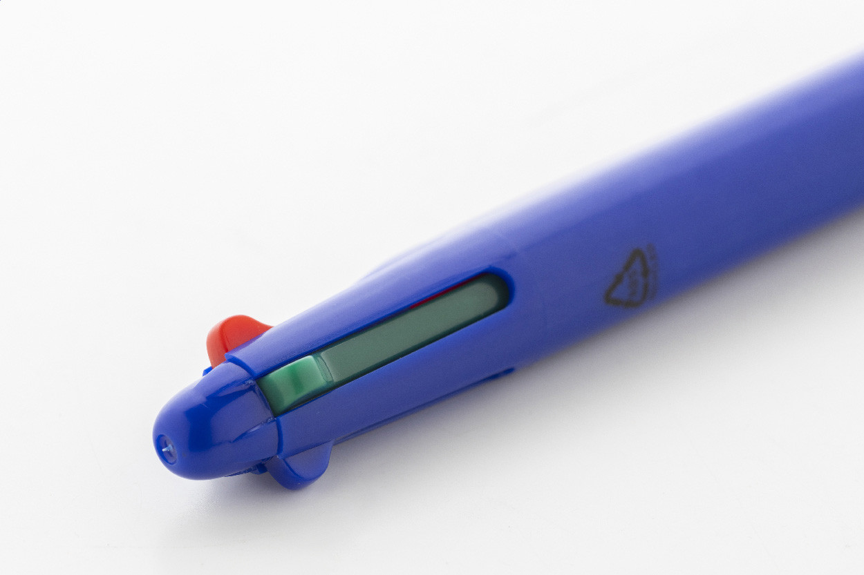 Viacfarebné guľôčkové pero z recyklovaného ABS materiálu s gumovým úchopom. S čiernou, modrou, červenou a zelenou náplňou.