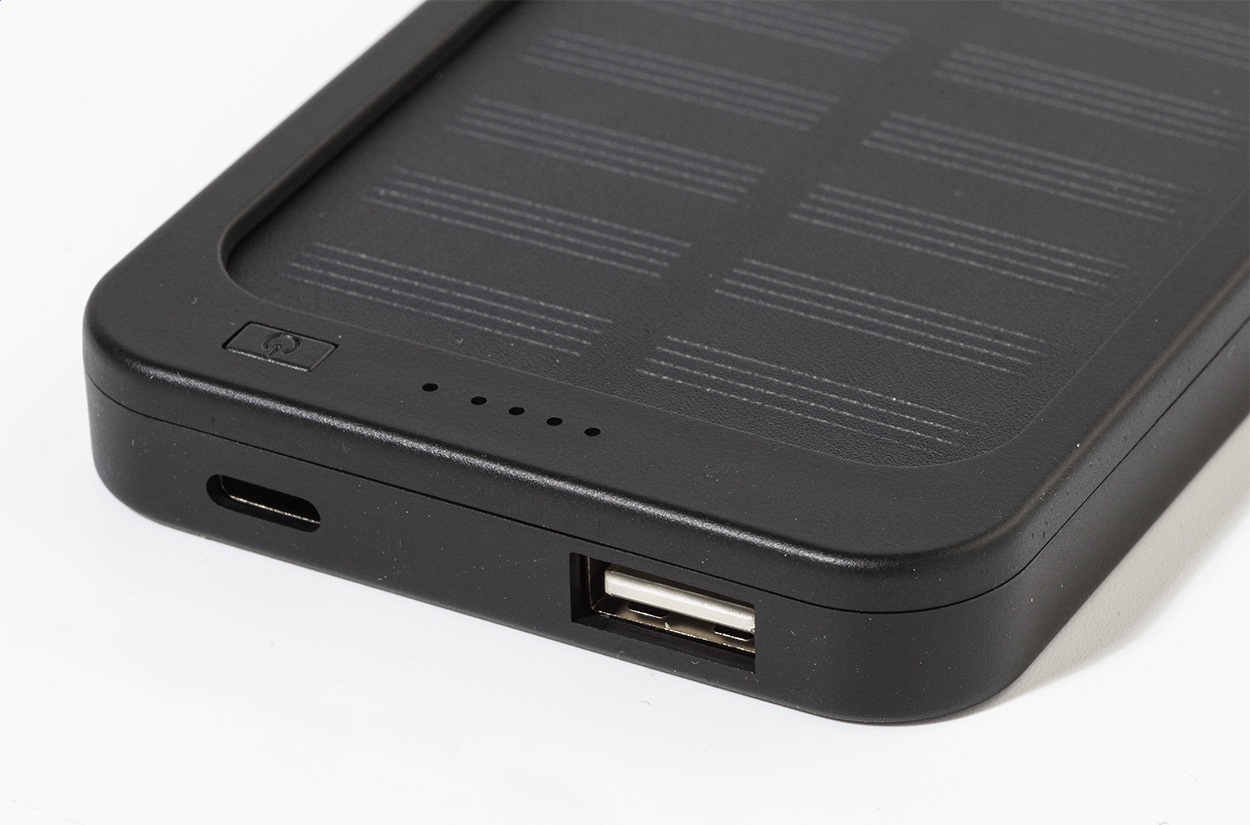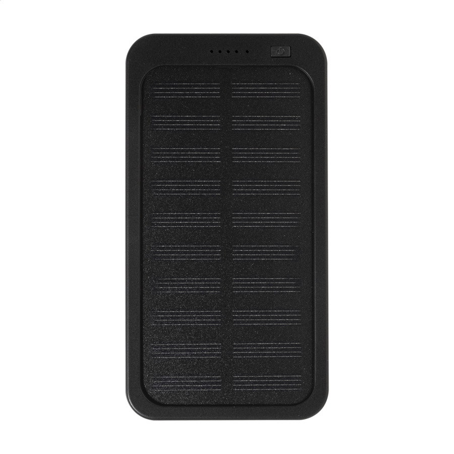 Power banka z recyklovaného ABS plastu so vstavanou solárnou nabíjačkou a batériou 4000 mAh. S 1 USB a 1 USB-C portom na nabíjanie. Vstupný port USB-C. Vrátane nabíjacieho kábla USB.