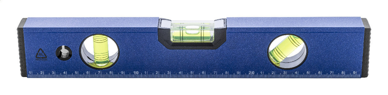 Magnetická vodováha z recyklovaného hliníka s tromi vodováhami (horizontálna, vertikálna a 45 °) a 30cm pravítkom.