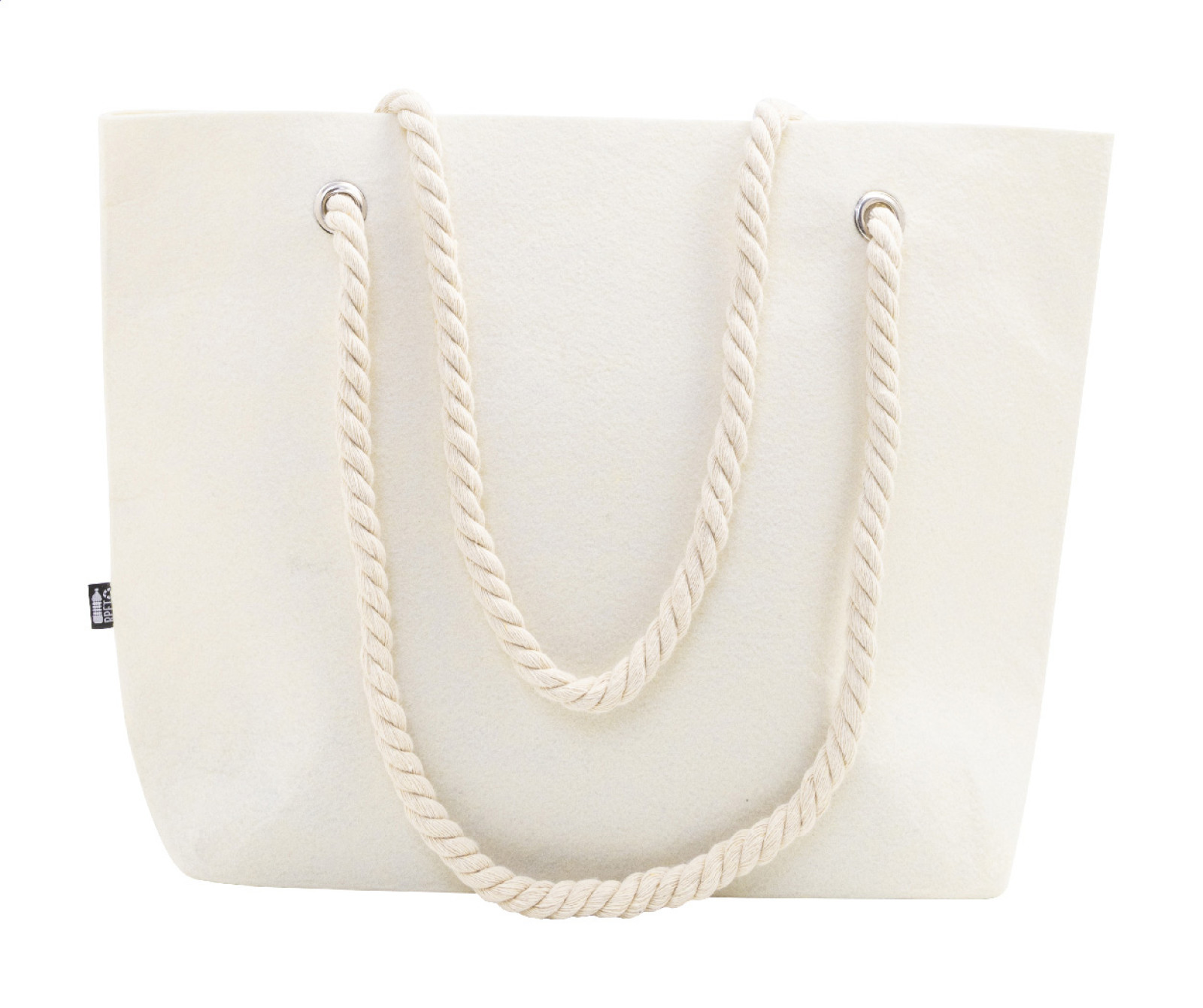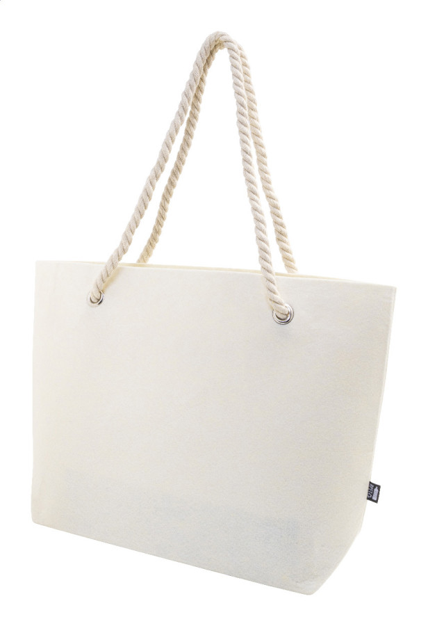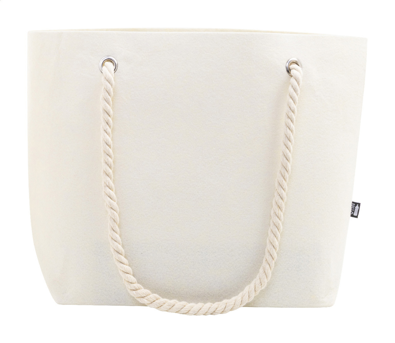 Plážová alebo nákupná taška z RPET s bavlnenými šnúrkami a spodným klinom. S výrazným štítkom RPET.