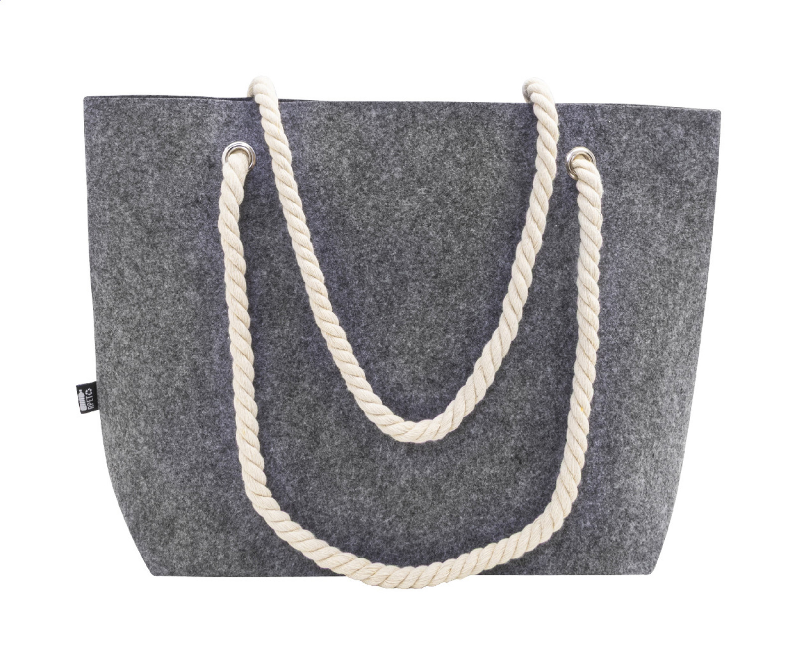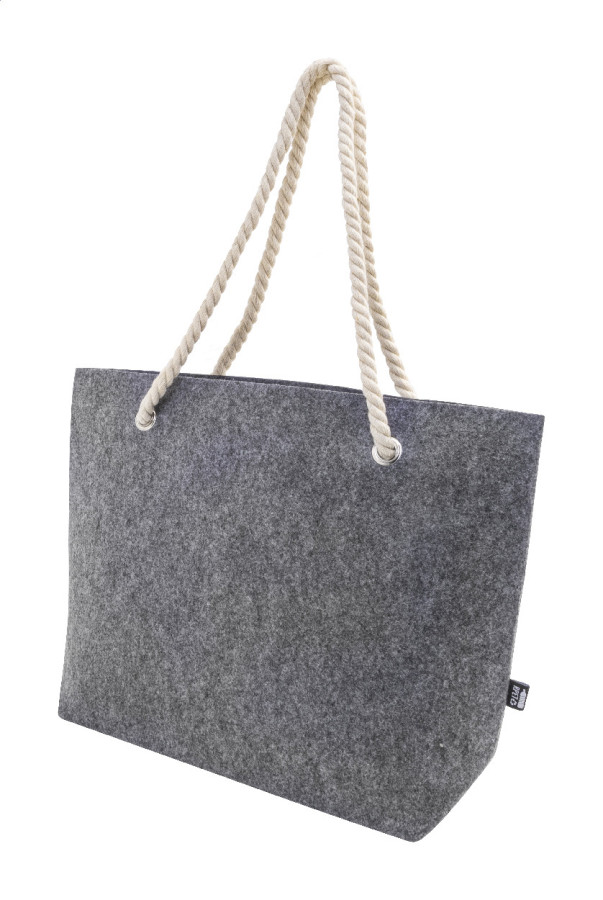 Plážová alebo nákupná taška z RPET s bavlnenými šnúrkami a spodným klinom. S výrazným štítkom RPET.
