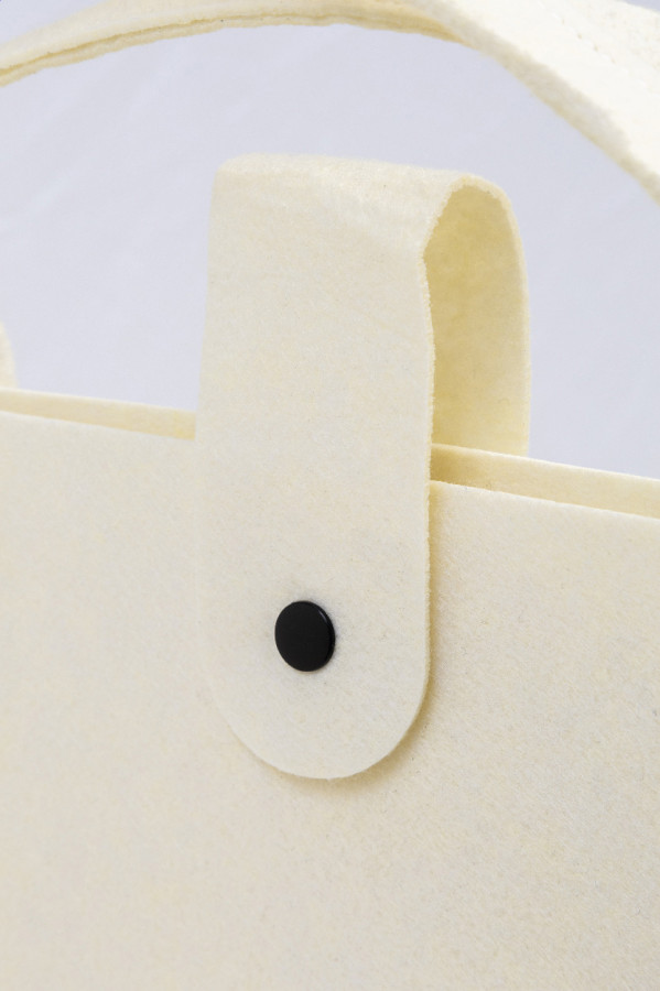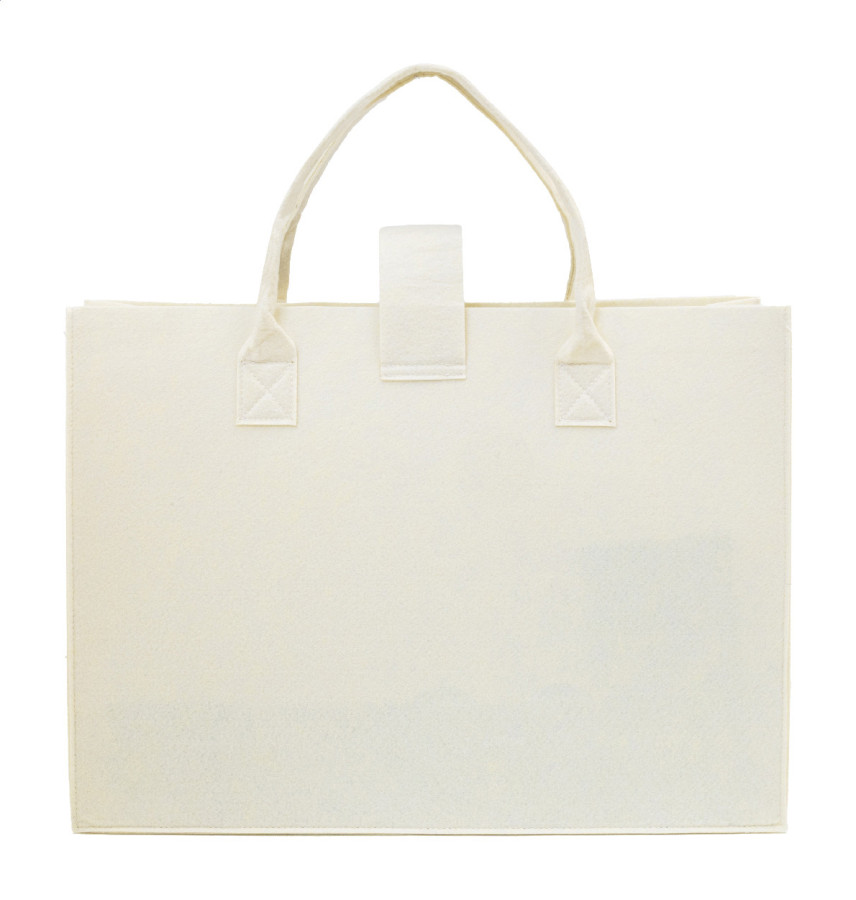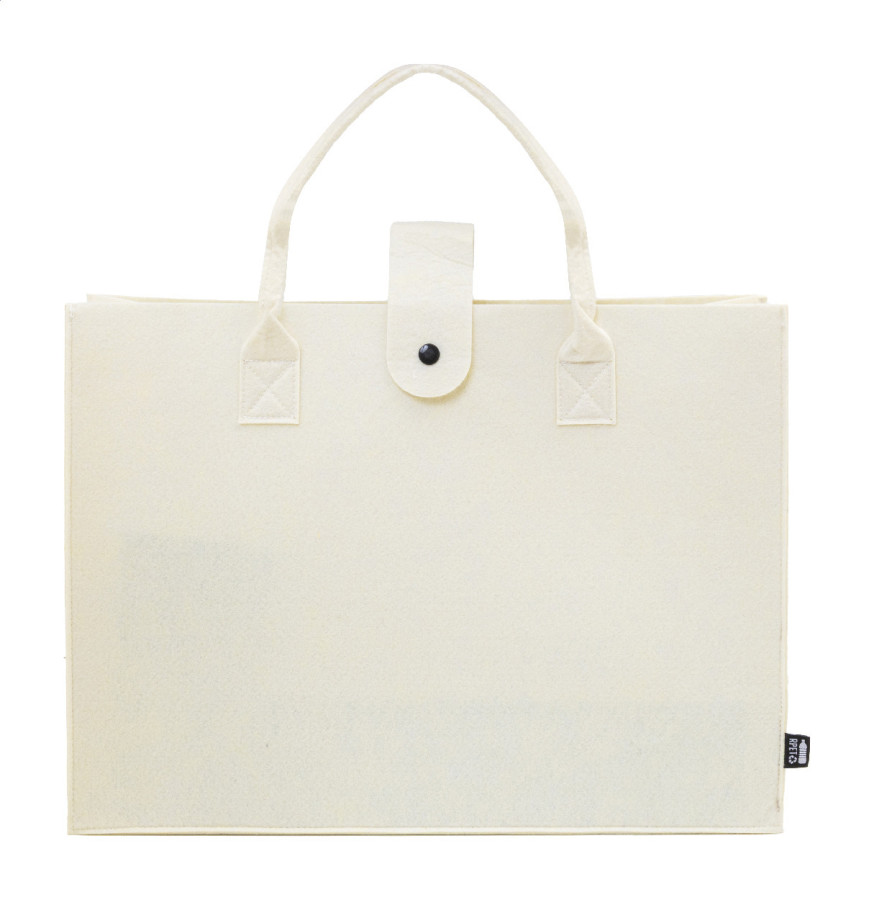 Nákupná taška z RPET plsti s klinom, zapínaním na gombíky a krátkymi uchami s výraznou etiketou z RPET.