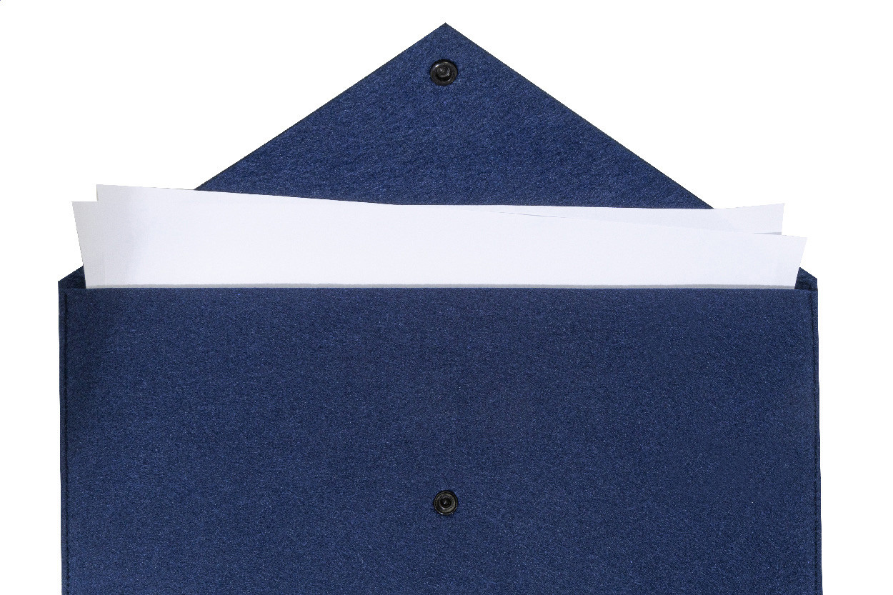 Taška na dokumenty alebo puzdro na notebook z RPET plsti s gombíkovým zapínaním. Vhodné pre notebooky do 13". S výrazným štítkom RPET.