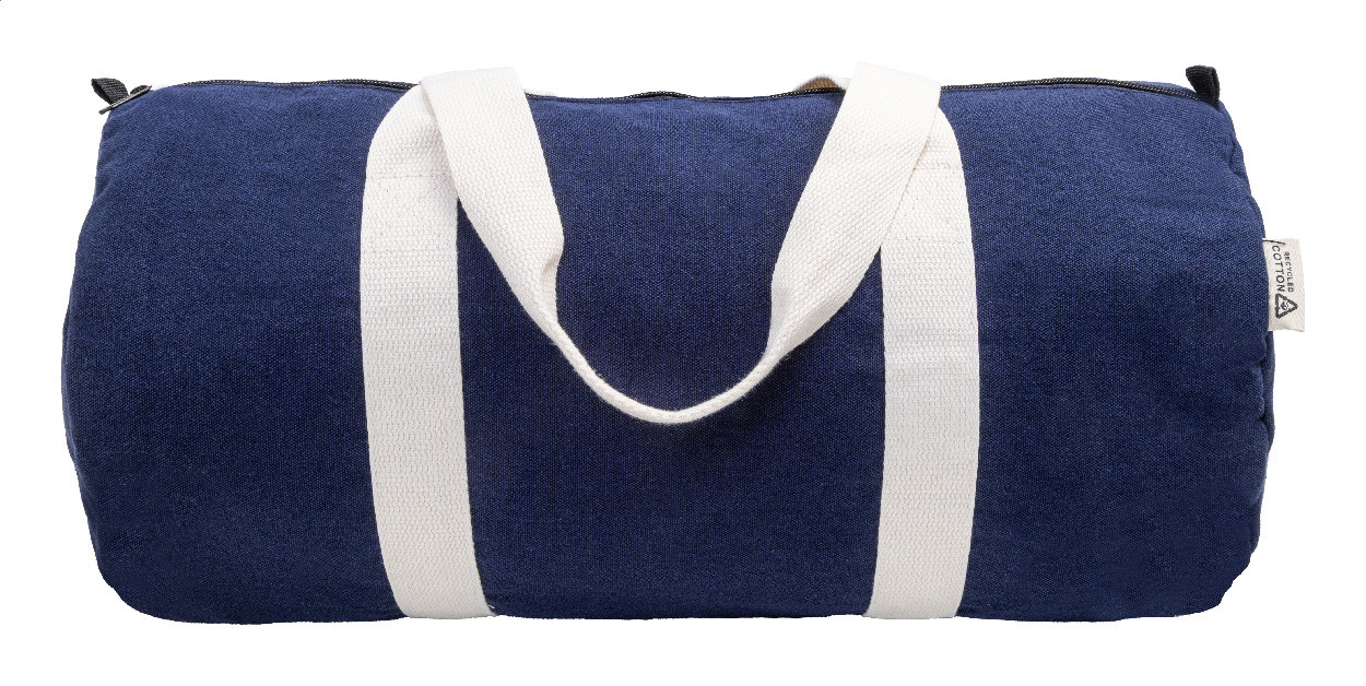 Športová taška z recyklovaného plátna s hlavnou priehradkou na zips, vnútorným vreckom na zips a dlhými ušami. 70% recyklovanej bavlny a 30% recyklovaného polyesteru. S výraznou etiketou z recyklovanej bavlny.