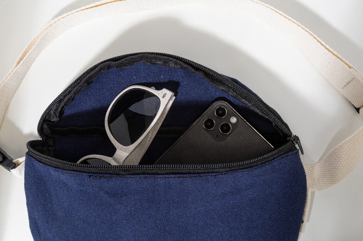 Ľadvinka z recyklovaného plátna s priehradkou na zips a nastaviteľným popruhom. 70% recyklovanej bavlny a 30% recyklovaného polyesteru. S výraznou etiketou z recyklovanej bavlny.
