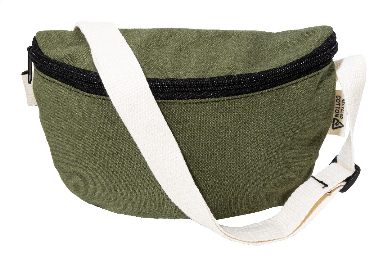 Ľadvinka z recyklovaného plátna s priehradkou na zips a nastaviteľným popruhom. 70% recyklovanej bavlny a 30% recyklovaného polyesteru. S výraznou etiketou z recyklovanej bavlny.