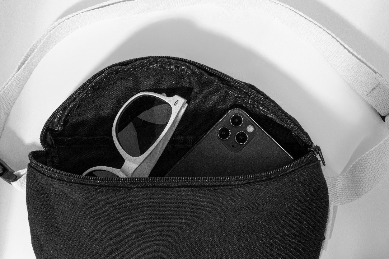 Ľadvinka z recyklovaného plátna s priehradkou na zips a nastaviteľným popruhom. 70% recyklovanej bavlny a 30% recyklovaného polyesteru. S výraznou etiketou z recyklovanej bavlny.