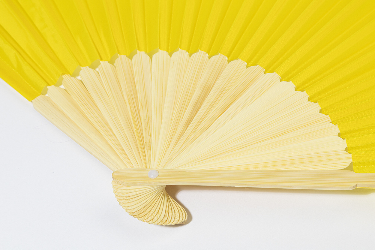 Vejár z RPET polyesteru s bambusovými rebrami.