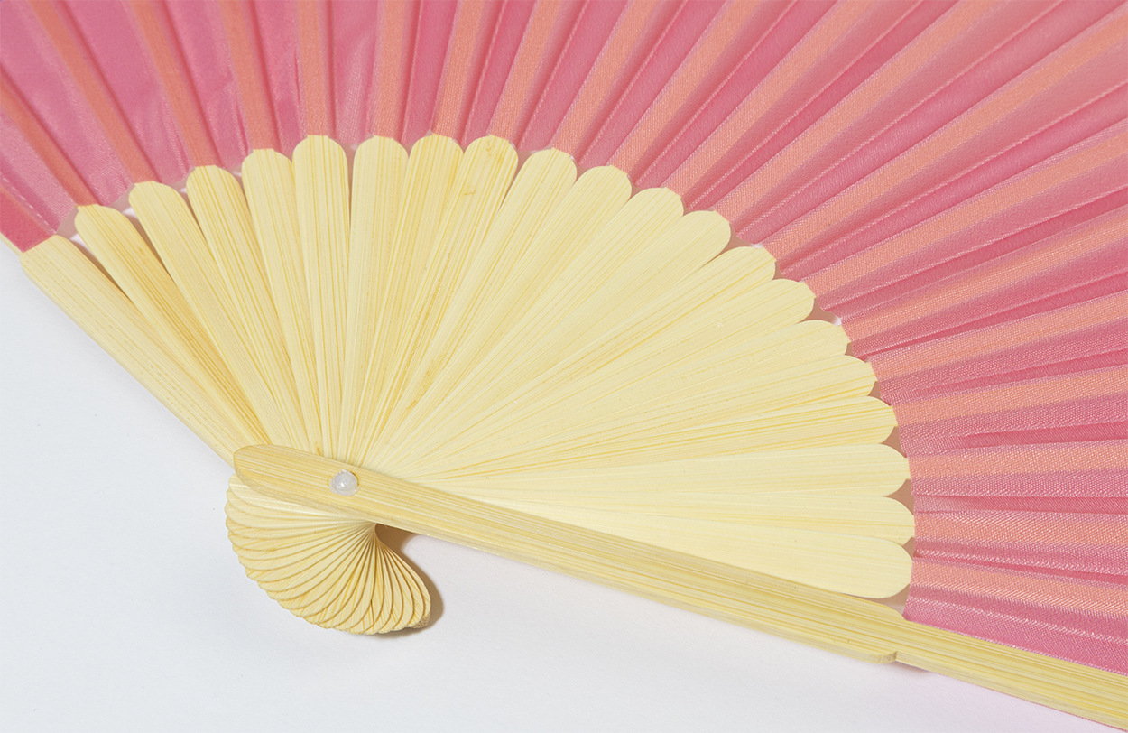 Vejár z RPET polyesteru s bambusovými rebrami.