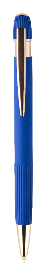 Guľôčkové pero z recyklovaného hliníka s pogumovaným telom a detailmi v ružovo-zlatej farbe.