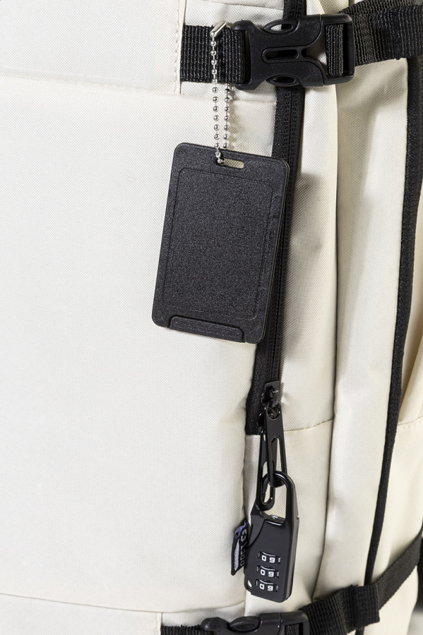 3dielna cestovná súprava v puzdre z RPET na zips. Vrátane polyesterového pásu na batožinu s 3-miestnym zámkom, visačky na batožinu z PP a kovového 3-miestneho zámku na kufor. Polyester 600D RPET s charakteristickým štítkom RPET.