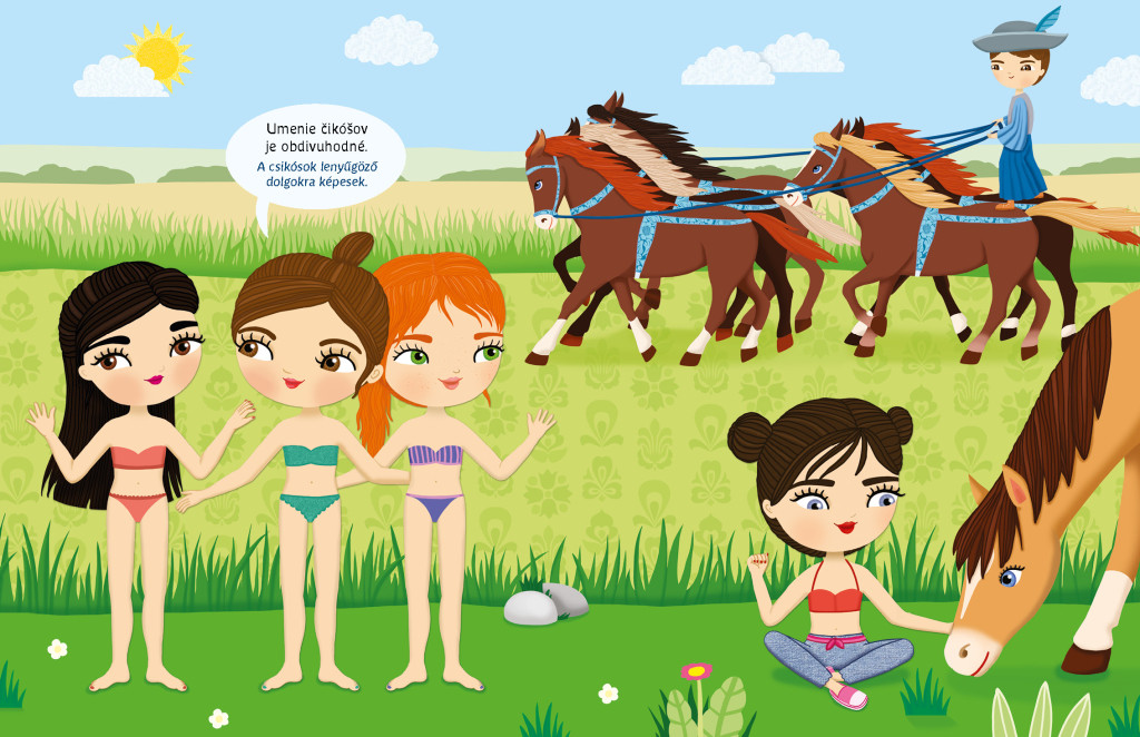Objavujte maďarskú kultúru s bábikou Sárou! Odprevaďte ju domov, prehliadnite si hlavné mesto Budapešť, okúpte sa v Balatone alebo v termálnych kúpeľoch, povečerajte v čárde a naučte sa tancovať divoký čardáš. Vďaka tejto novinke zo série, ktorá patrí k našim najpredávanejším, spoznajú malí čitatelia niečo z maďarskej kultúry a kúzla tejto krajiny a tým najjednoduchším a zároveň hravým spôsobom poodhalia každodenný život tamojších ľudí, ich zvyky alebo navštívia zaujímavé miesta. Takto si upresnia svoje predstavy o inej krajine, jej obyvateľoch, folklóre či móde.