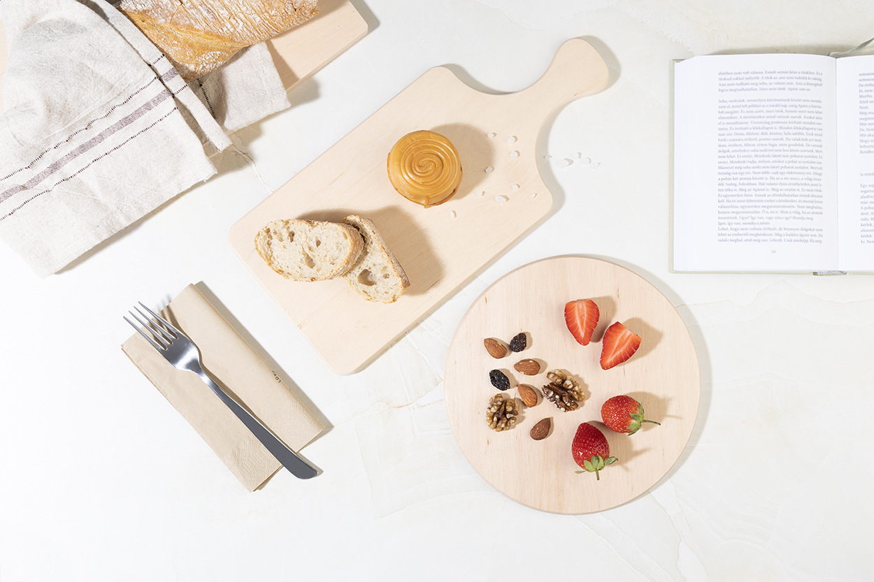 Okrúhla doska na krájanie vyrobená z jedného kusu prírodného jelšového dreva. 100% prírodné a úplne bez lepidla.
